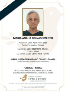 A Funerária Santos & Bárbara presta homenagem e partilha informação das pessoas falecidas.